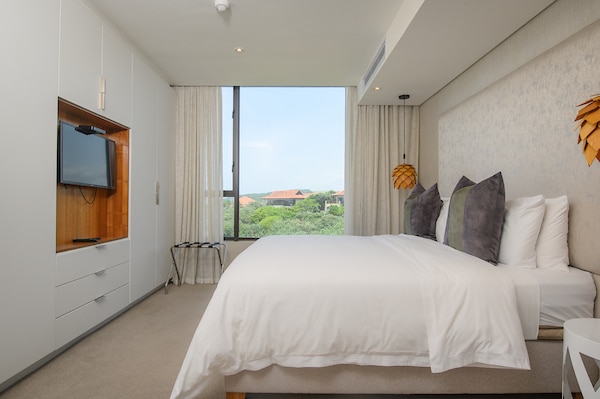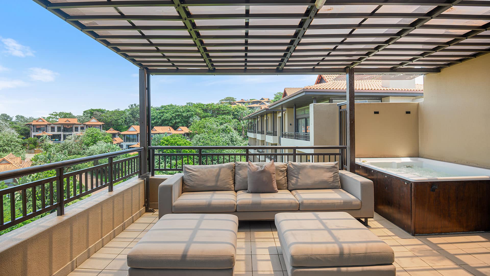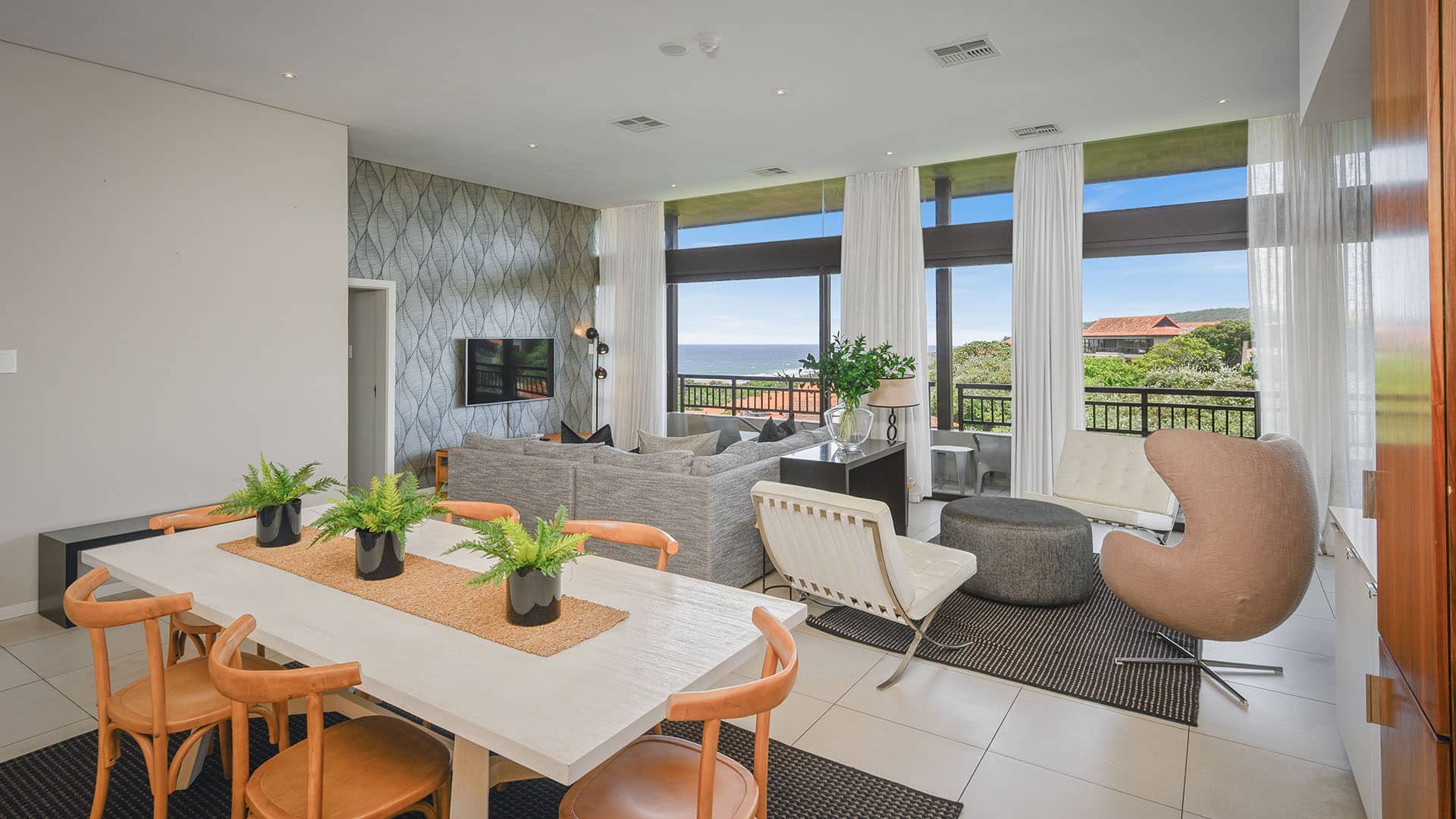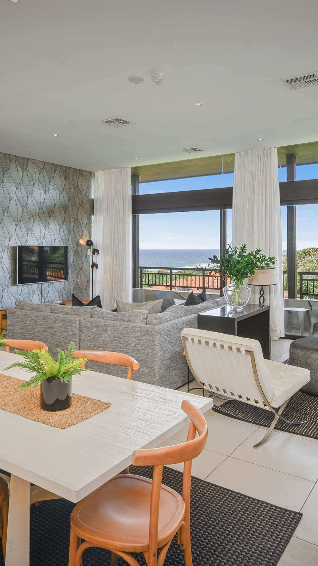 …A spacious 3 Bedroom luxury apartment ideal for families and groups, offering stunning ocean views, generous living areas, and complete home-style convenience. Enjoy two king bedrooms and a twin room, a full kitchen, a separate lounge and dining room, a private patio and balcony, and your own jacuzzi. The apartment includes laundry facilities, a gas braai, TVs in the lounge and main bedroom, and all essential appliances. Sleeps 6 adults or up to 8 with children.